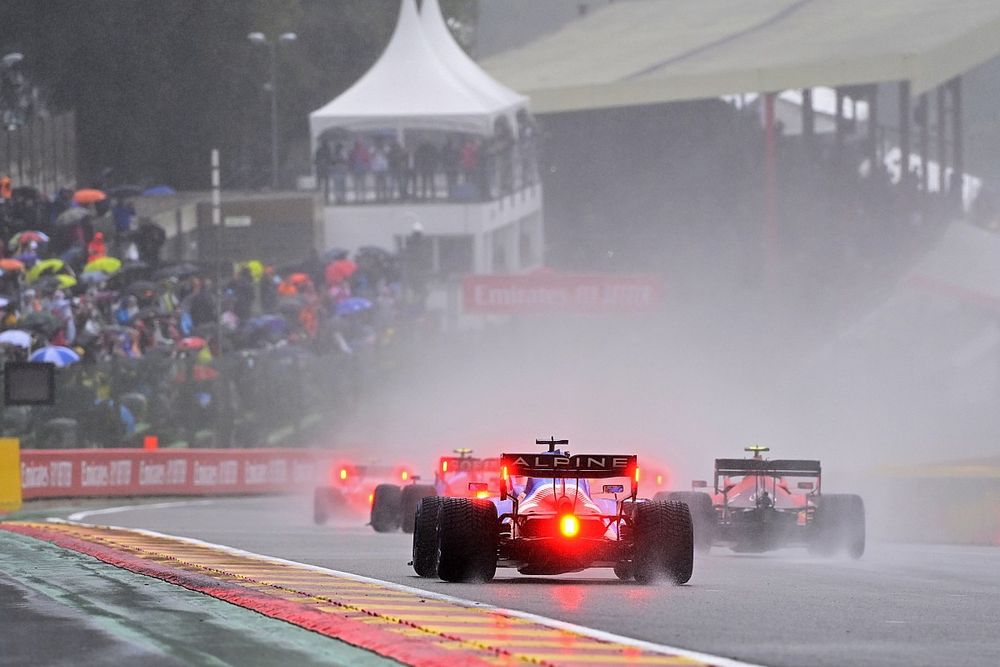 Se aprecia que hay mucho spray en la pista y la visibilidad es realmente complicada para los pilotos.