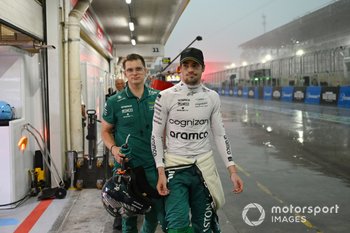 Fernando Alonso, Aston Martin AMR23, Lance Stroll, Aston Martin AMR23, Zhou Guanyu, Alfa Romeo C43, en el pit lane